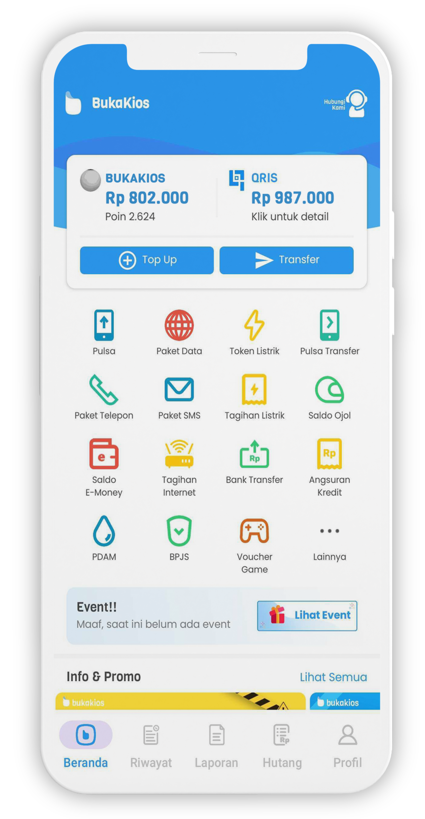 Bangun bisnismu lebih mudah dan cepat bersama BukaKios! Nikmati kemudahan transaksi digital dalam satu genggaman.